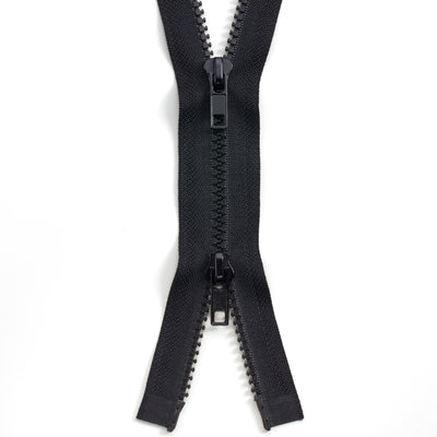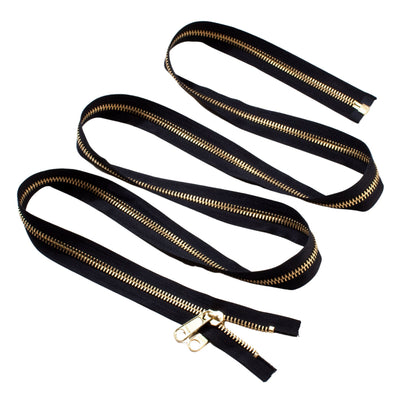 Sleeping bag replacement zippers are often 9 feet long (108 inches), however, they do vary so double check yours by measuring before you order. Sleeping bag zippers separate at the bottom with a small insertion pin and retainer box, so you can separate the zipper completely if you need to. If you are looking for a kids' sleeping bag zipper, the #5 brass zipper with a 2-handle nonlock slider or the #5 molded plastic zipper with a 2-handle nonlock might do the trick. It's a medium weight zipper and is appropriate for most children's-size sleeping bags. For adult sleeping bags, consider a zipper like a #10 molded plastic zipper or a metal-tooth zipper like a #10 brass zipper or #10 aluminum zipper. #10 means they are heavy duty and are more suitable for camping and outdoor use.